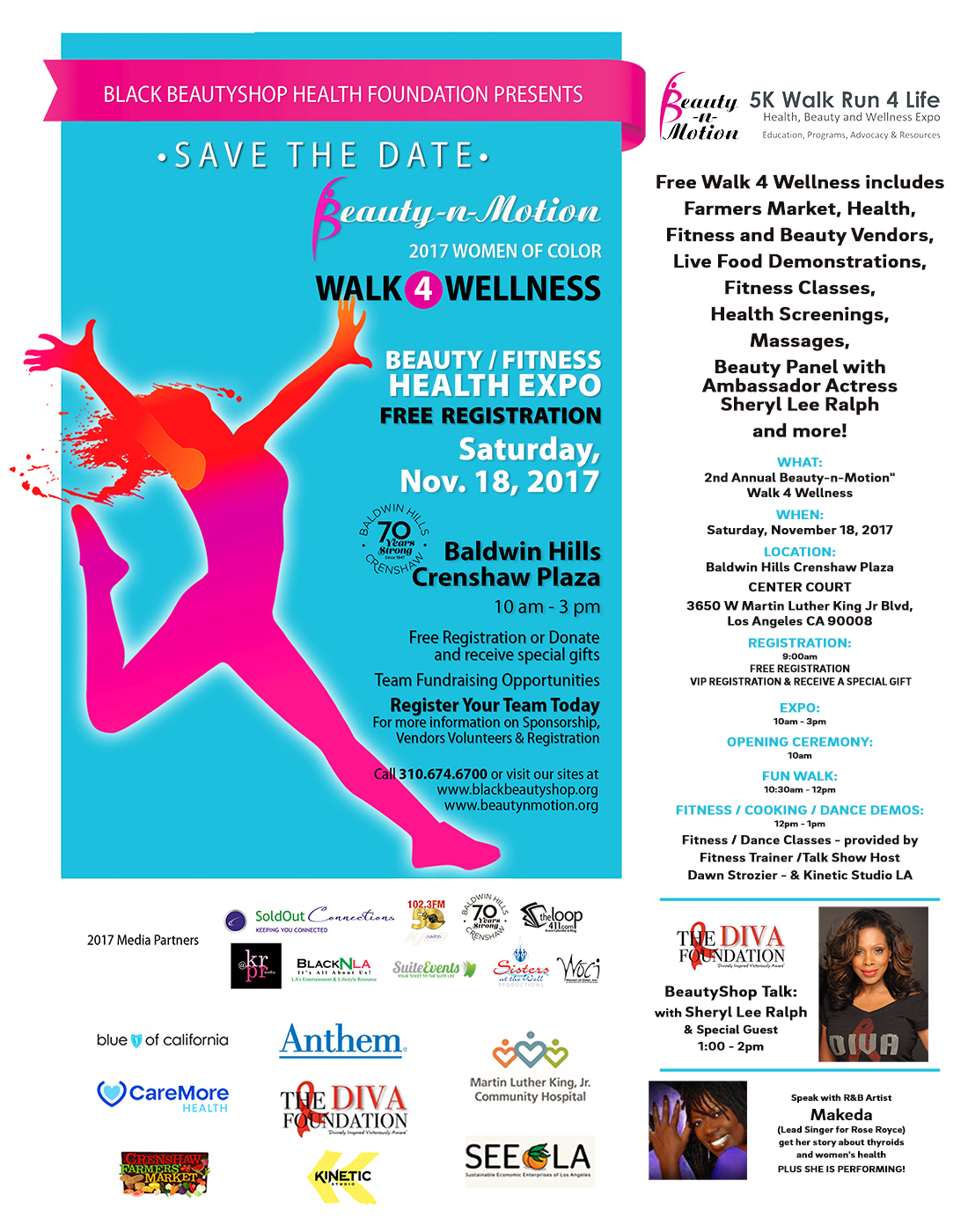 Beauty-n-Motion Walk 4 Wellness was created to raise awareness of preventable health diseases and to encourage women and their families to get screened and know their status.